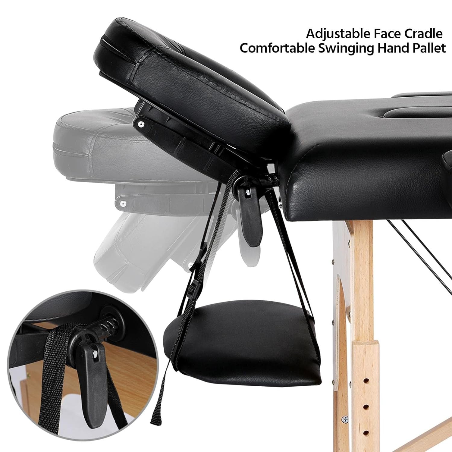 Featuring adjustable height and a customizable headrest, it adapts easily to both therapist and client needs. The foldable, lightweight design allows it to convert into a compact suitcase with a carry handle for effortless transport and storage.