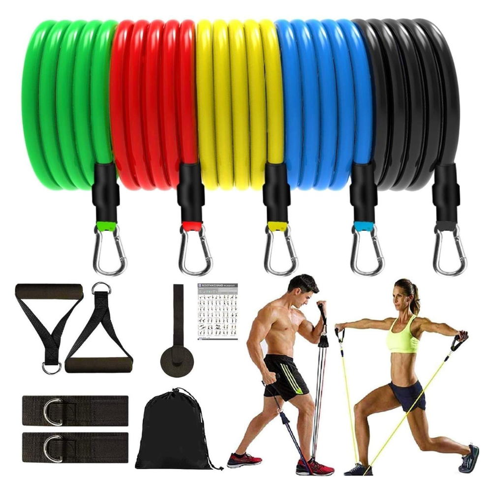 Upgrade your workouts with stackable resistance bands up to 100 lbs, featuring 5 color-coded tubes that can be used individually or combined for your ideal intensity. Perfect for full-body training, you can perform 50+ exercises—from strength building to stretching, mobility, and rehabilitation.