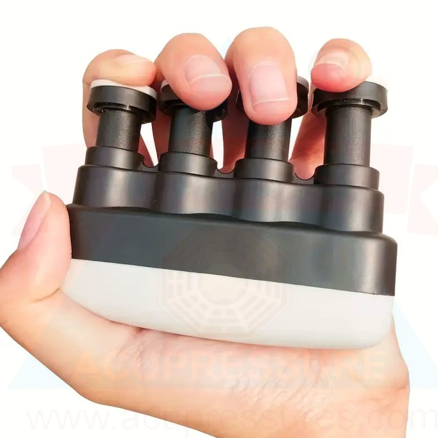The Hand Exerciser strengthens finger exercises and flexion mobility. It’s ideal for finger pain, difficulty flexing, arthritis, and even after a broken finger. It’s also recommended by doctors for piano, guitar, and computer use. The Finger Strength Trainer is designed to accommodate fingers, allowing for individual finger exercises.